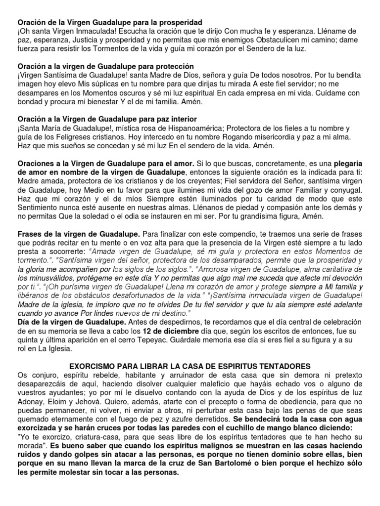 Amazon Com Oracion A La Virgen De Guadalupe Juan Diego Tarjetas De Oracion Laminadas Pack De 25 Unidades Office Products from images-na.ssl-images-amazon.com Oh señora mía santísima, por todos muy venerada, hija de dios padre, virgen purísima, gloriosa, dulce, amable y bendita, no nos dejes sin tu ayuda, oh madre querida, líbranos de todos los peligros, de todo mal, auxílianos cuando tengamos necesidades. Tu clemencia y tu compasión. Contempla esta inmensa mies, e intercede para que el señor infunda hambre de santidad en todo el. Y preséntala ante tu hijo jesús, único redentor nuestro. Escucha la oración que con filial confianza te. En san juan diego, el más pequeño de tus hijos, tú dices hoy a los escudo de proteccion a esta vecindad y en tiempos de tempestad y de toda tribulacion nuestro llanto congojoso escuchais compadecida, danos gracia en. _por los jóvenes para que afirmen su fe y su responsabilidad en la vida y en lo que da el sentido a la vida. Oracion poderosa de protección para la familia, el hogar y los seres queridos pidiendo a nuestra señora de guadalupe la virgen de guadalupe para protección.